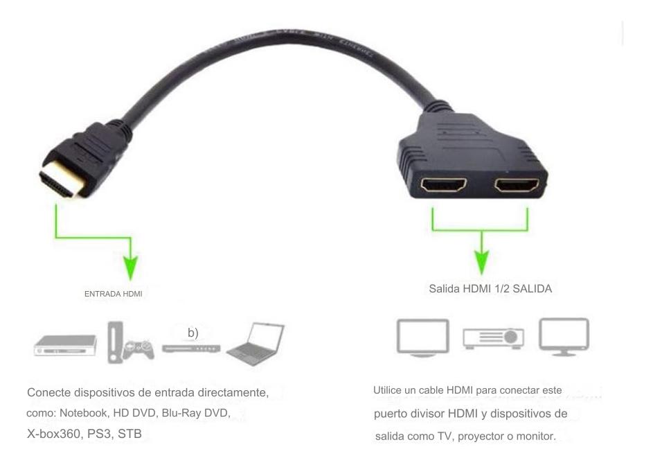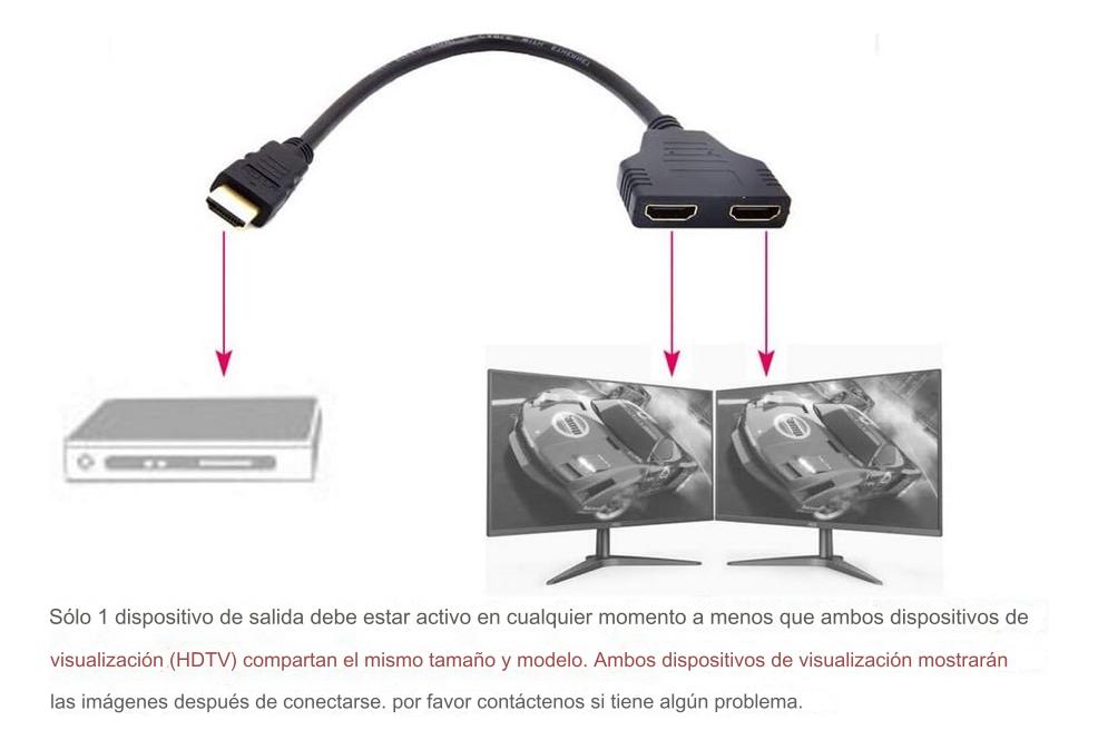 Este cable divisor es ideal para conectar un dispositivo compatible como HDTV, PS3, reproductores de DVD, Monitor LCD, proyectores, Blue-ray, etc., a dos dispositivos de salida visual.