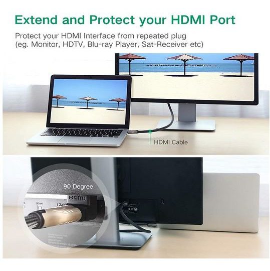 Llegue a esos lugares difíciles de conseguir sin arriesgarse a doblar los cables HDMI excesivamente, lo que puede dañar el cable o incluso peor los puertos de su equipo.