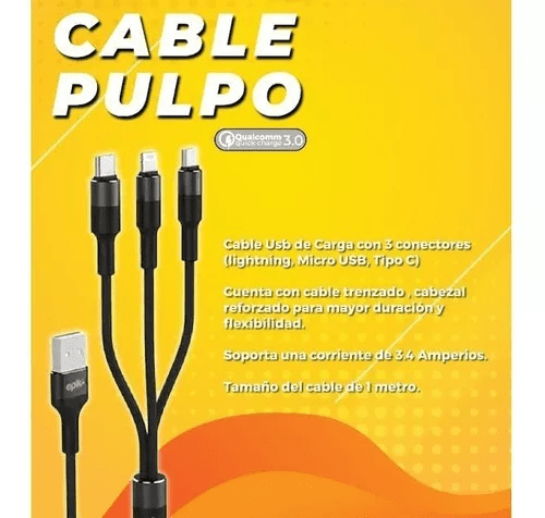 No te conformes con cables mediocres, invierte en calidad y comodidad con nuestro Cable USB de Carga Multifuncional. ¡Carga tus dispositivos de manera eficiente y sin preocupaciones con la solución definitiva para tus necesidades de carga!