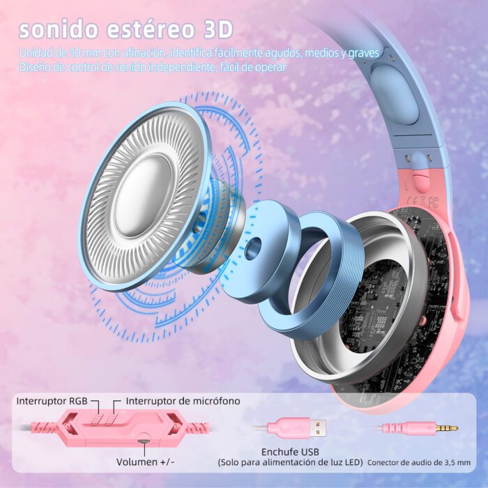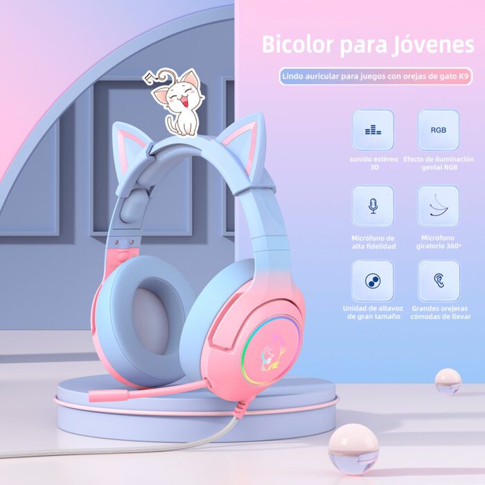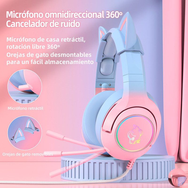 ONIKUMA K9 es un auricular para juegos de diseño único para todas las chicas y chicos gamer que existen. Con luces LED de colores, estos auriculares son ideales para disfrutar de tus videojuegos favoritos. Con una calidad de sonido envolvente notable, estos auriculares brindan una experiencia de juego extraordinaria.Haz que tu Avatar se destaque en un juego con reflejos rápidos que se ofrecen con estas orejas de gato.